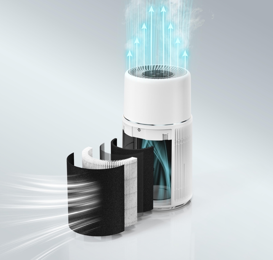 【Uah Pet Air Purifier】はHEPAフィルターの内側に臭い物質を吸着する活性炭フィルターを搭載。