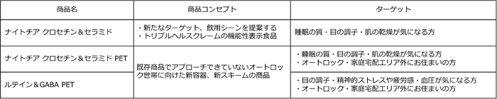 (1) 既存の宅配商品でアプローチできていない若年層顧客、夜の飲用シーンに親和性の高いヘルスクレームを選定。