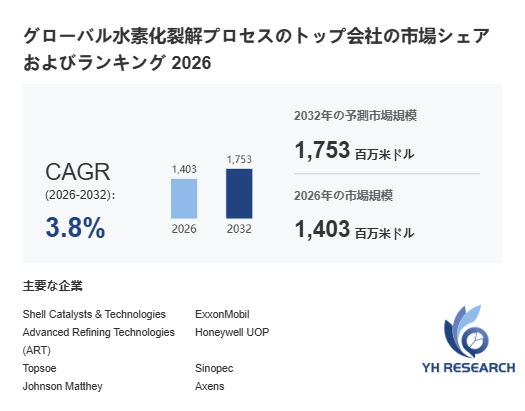 本記事は、YH Researchが発行したレポート「グローバル水素化裂解プロセスのトップ会社の市場シェアおよびランキング 2026」 を紹介しています。