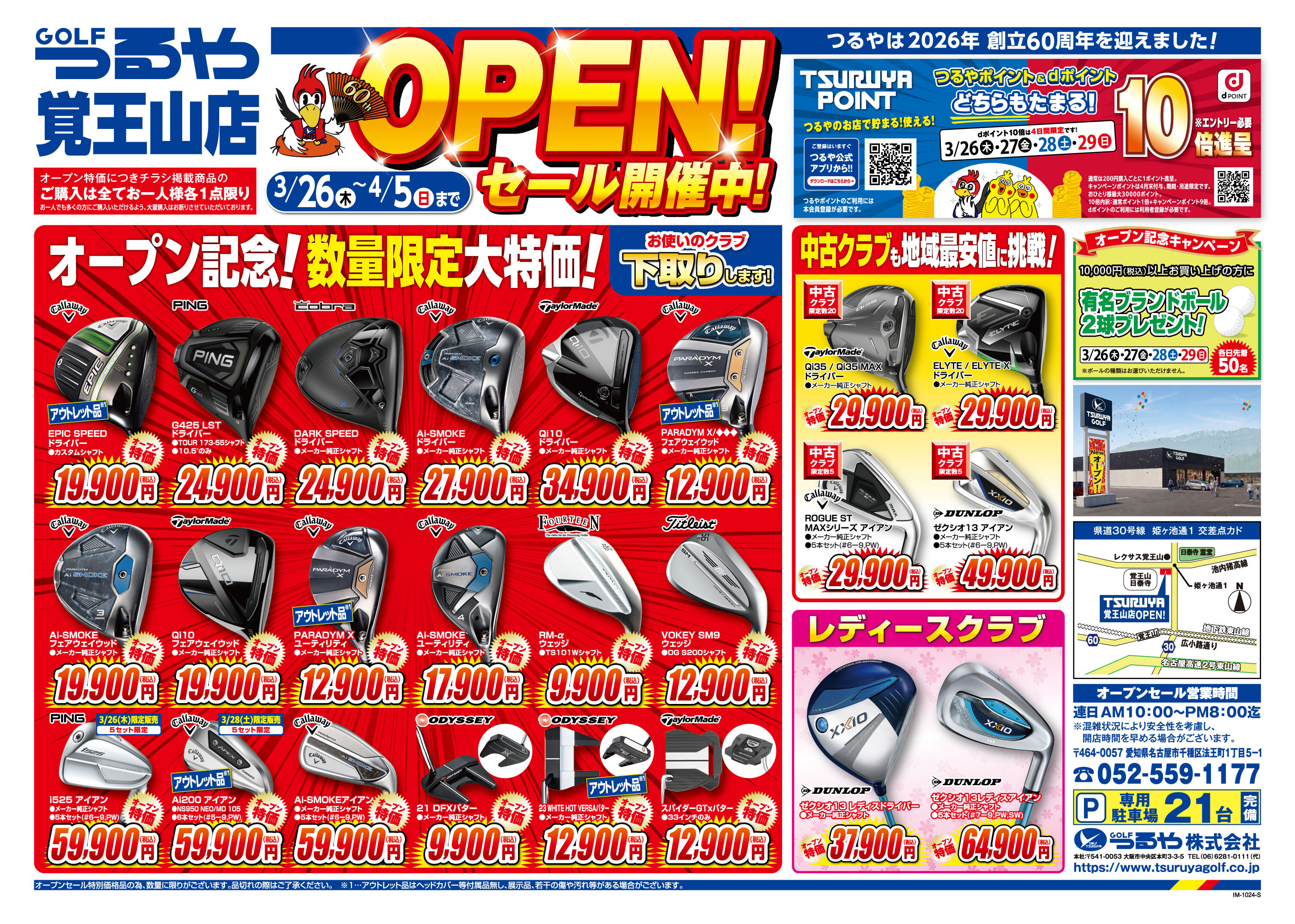 つるやゴルフ覚王山店が3月26日にオープン 記念セールなどを実施!