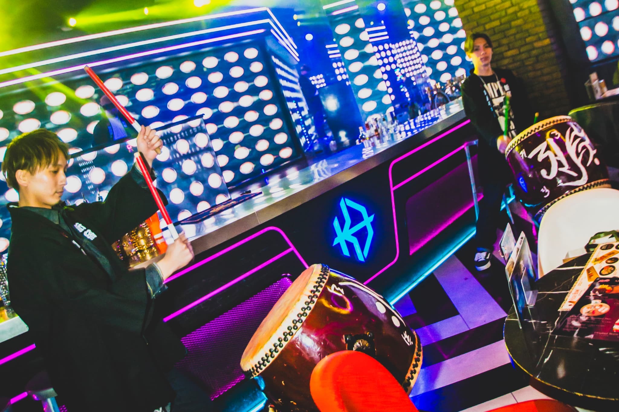 また、エンターテインメント面でも、KUJIRAならではの夜を演出します。平日はダンス、DJ、和の演出を取り入れた演出を複数回実施し、金曜・土曜は22時30分と深夜2時に、より華やかなショーを開催。ダンス、DJ、パフォーマンスに加え、和太鼓を使った演出や和の要素を取り入れたステージを通じて、食事やお酒だけでは終わらない特別な時間を提供いたします。