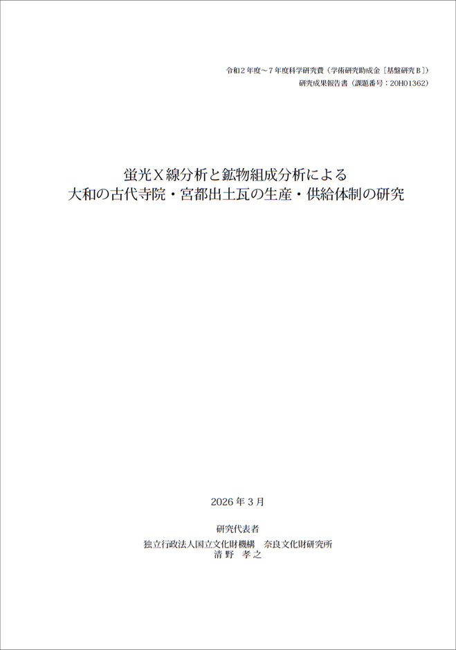 『蛍光X線分析と鉱物組成分析による大和の古代寺院・宮都出土瓦の生産・供給体制の研究』を公開しました