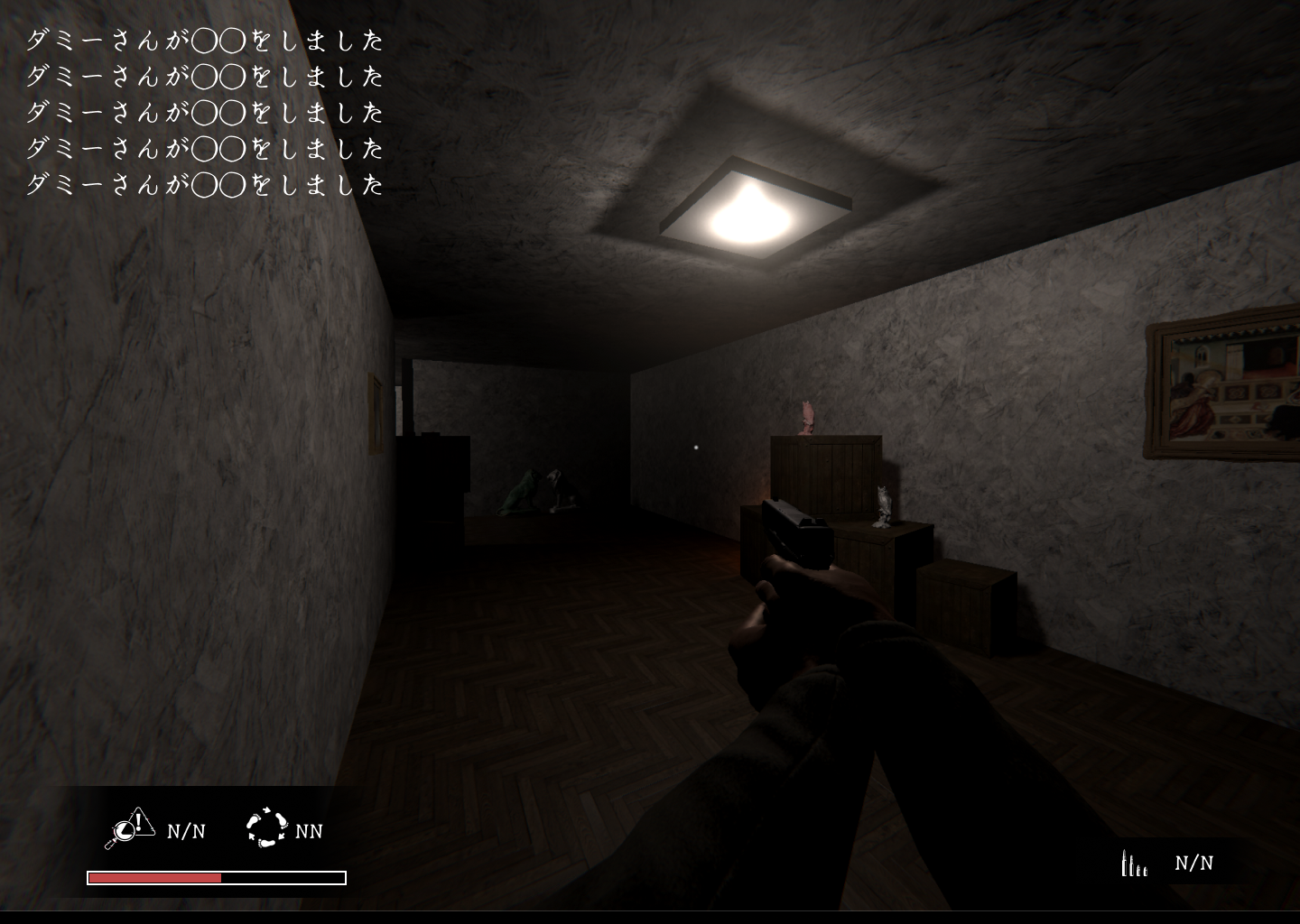 従来の「異変を見つけて引き返す」ルールとは異なり、本作では「発見した異変を撃って除去する」ことが進行の条件となります。異変を残したまま進むと、空間そのものに拒絶され、暗転から赤画面へと切り替わる失敗演出と共に元の地点へ引き戻されます。射撃にはリソース(残弾数)管理が伴うため、観察力だけでなく、限られた弾薬で対処する判断力と冷静さが求められます。