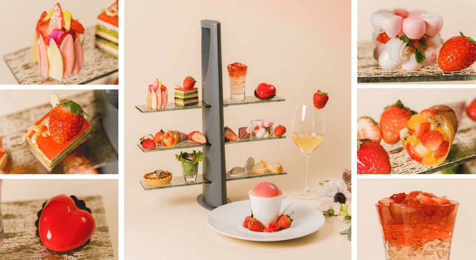 あまおういちごや、いちごフレーバーをふんだんに使ったスイーツを7種スタンドに