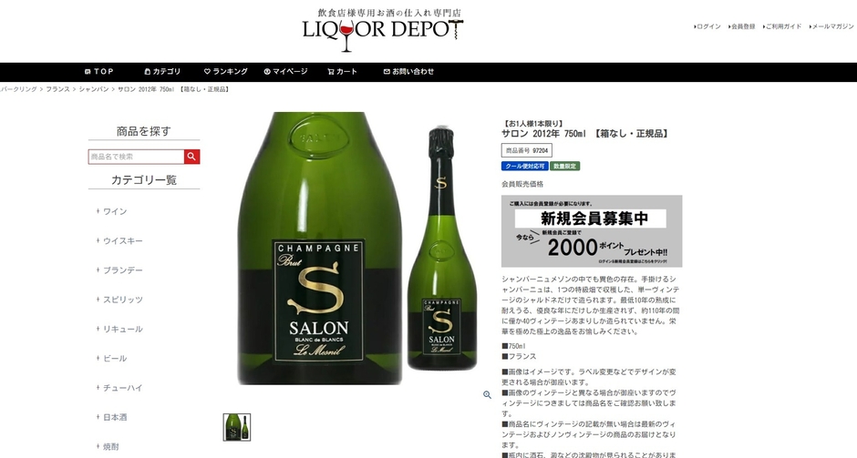 新規会員登録いただいたお客様に『LIQUOR DEPOT』内でご利用いただけるお買い物ポイントを2,000ポイントプレゼントキャンペーンを実施中!