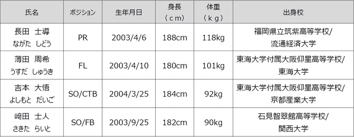 花園近鉄ライナーズの新加入選手について下記のとおりお知らせいたします。