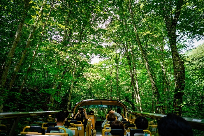 奥入瀬渓流(おいらせけいりゅう)沿いに建つ唯一のリゾートホテル「星野リゾート 奥入瀬渓流ホテル」は、2020年10月1日~16日の期間、青森県の観光を応援すべく、「渓流オープンバスツアー」一般開放を実施します。オープンエアの2階建てバスで渓流沿いを走行するため、森のトンネルを走り抜ける爽快感や、約3mの高さから見る渓流の絶景を存分に楽しめます。青森県民なら一度は来たことがある奥入瀬渓流を新たな目線で味わい、その魅力を再発見できるツアーです。