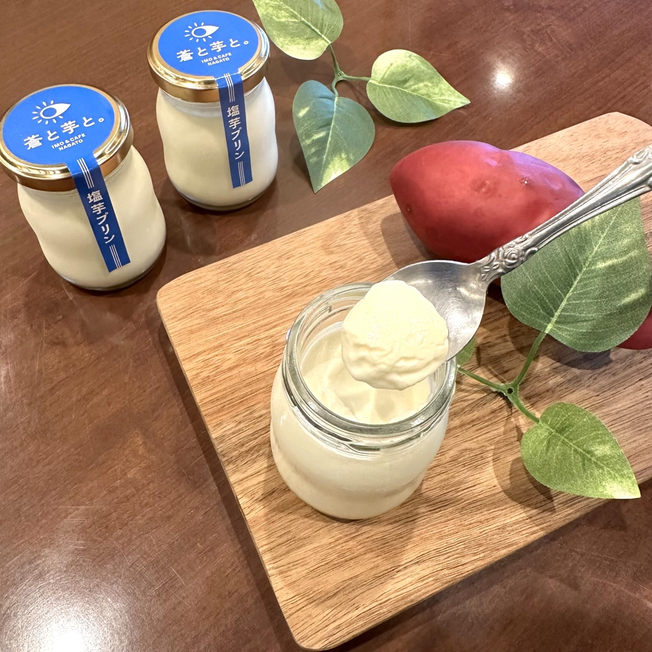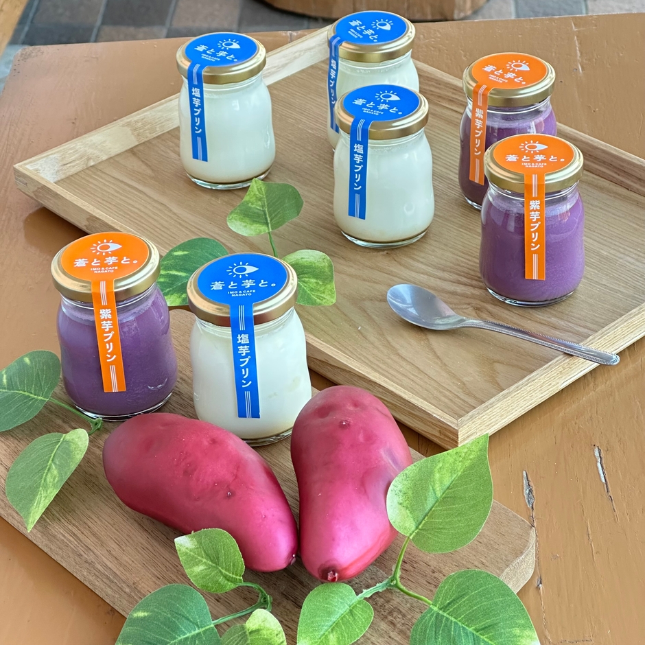 山口のお芋スイーツ専門店「IMO&CAFE NAGATO 蒼と芋と。」 地元産の塩を使った塩芋プリン・紫芋プリンを発売!