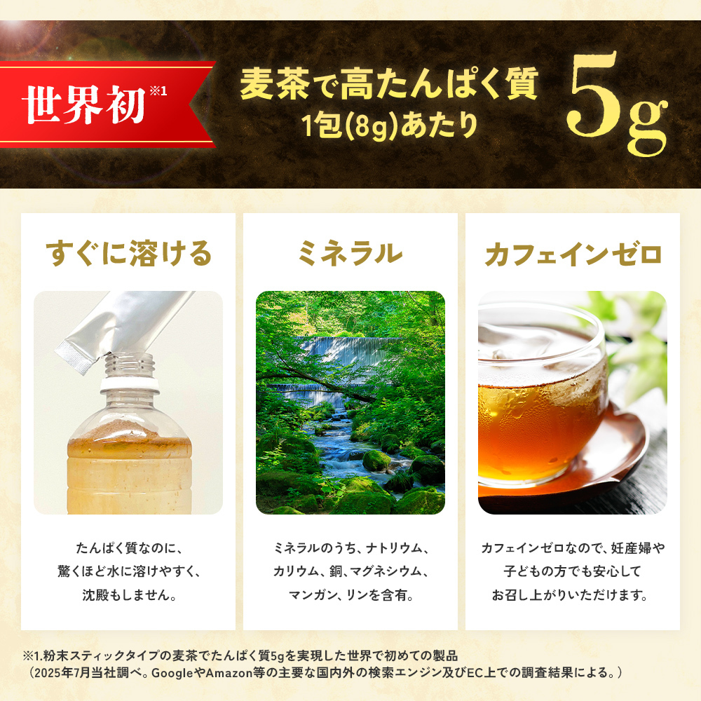 ※1 自社調べ(2025年7月時点、たんぱく質を配合した粉末麦茶飲料として)