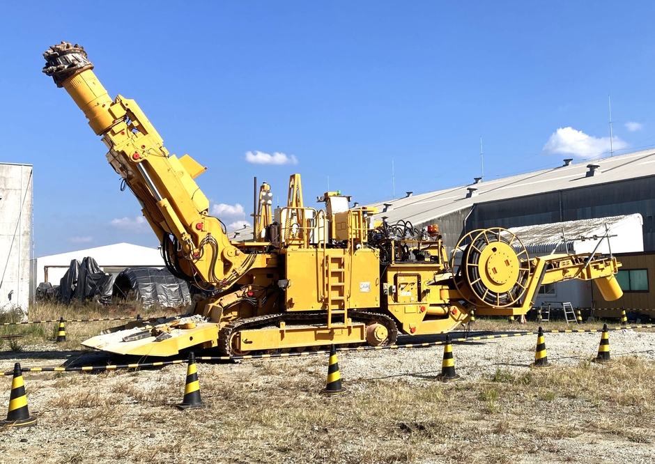 これらの課題を解決するために、安藤ハザマと三井三池製作所は、機械掘削工法における自動掘削・遠隔掘削を実現するAI-ロードヘッダの開発を進め、2024年6月には「令和3年度 中部縦貫坊方トンネル工事」(注2)において、本開発機械による自動掘削および遠隔掘削の実証試験を行い、その有効性を確認しました(写真2、3)。