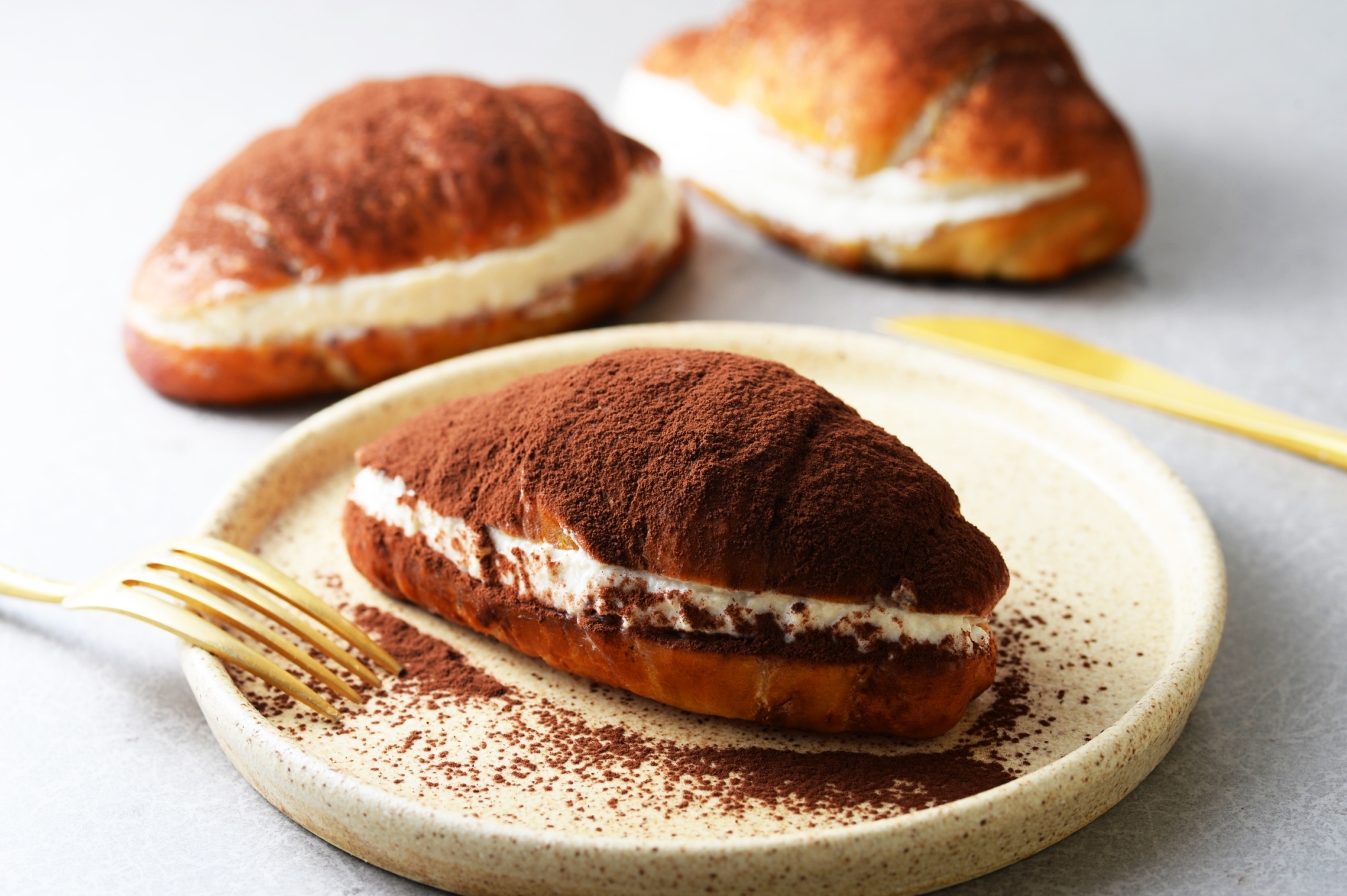 北海道産生クリーム100%のホイップクリームを使用した自家製のティラミスクリームをサンドしました。