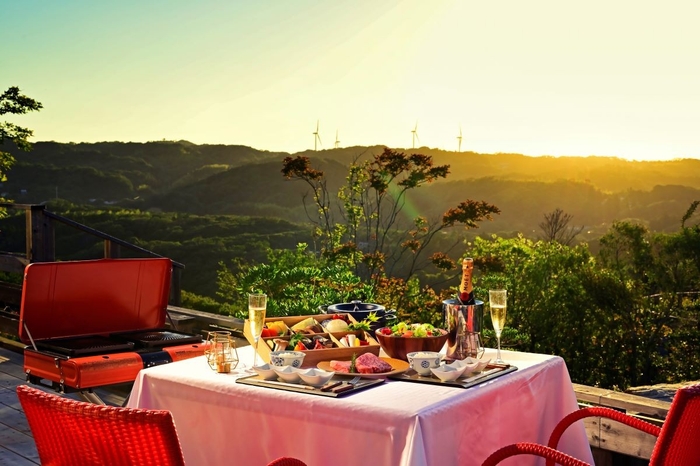 淡路島北部の静寂の中で、凛とした空気包まれる丘の上にあるラグジュアリーヴィラ「GRAND CHARIOT 北斗七星135°」では、淡路島が誇る山の恵み“淡路ビーフ”の中でも、最高級A5ランクのロース肉や旬の地場産野菜、水揚げされたばかりの魚介類を、爽やかな風が吹き抜けるテラス席にて豪快にBBQできる『A5ランク淡路ビーフの極上バーベキュープラン』の予約を1月14日(水)より開始いたしました。尚、本プランの提供は2026年5月1日(金)~9月30日(水)となります。