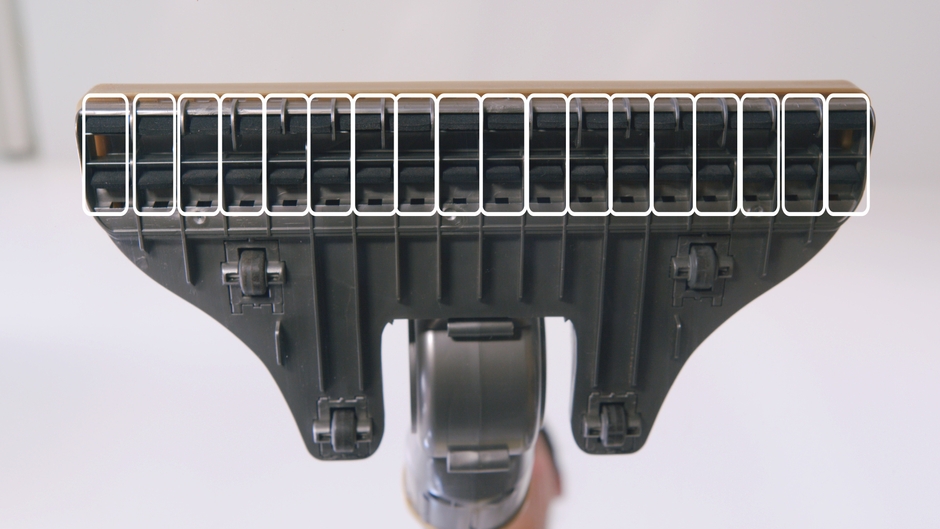 「カルスイ」の床用吸込口となるクリーナーヘッド部は、18個の細ノズルを付けたような構造と独自開発のルーバーを採用することで、ヘッドの端まで均一な吸引を実現するとともに、ラグやカーペットの噛み込みや髪の毛やペットの毛の絡まりも抑制します。モーターや電子部品などの駆動部が無いので、中までしっかり丸洗いができ、ヘッド内の汚れや毛髪・糸類なども絡まず清潔に使用いただけます。