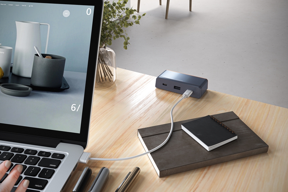120W超高出力と小型化を両立させるために、試行錯誤を重ねこの薄さにたどり着きました。無駄を削ぎ落としたミニマルなデザインは、狭いスペースや小さい机でも邪魔にならず使用可能。会社のオープンスペースや、会議室、コワーキングスペースにもおすすめです。