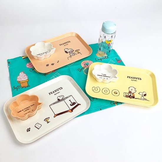 朝食やブランチなどに活躍しそうな、メラミンプレートが登場しました。大人気のスヌーピーのデザインで、カラーもパステル調でキュートです。吹き出しデザインのボウルもついていて、使いやすさも満点ですよ。経験上、こういう凝ったスヌーピーの食器は品切れがち。気に入ったらお早めにお店にGO!かもですよ!