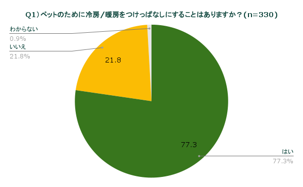 Q1)ペットのために冷房/暖房をつけっぱなしにすることはありますか?(n=330)