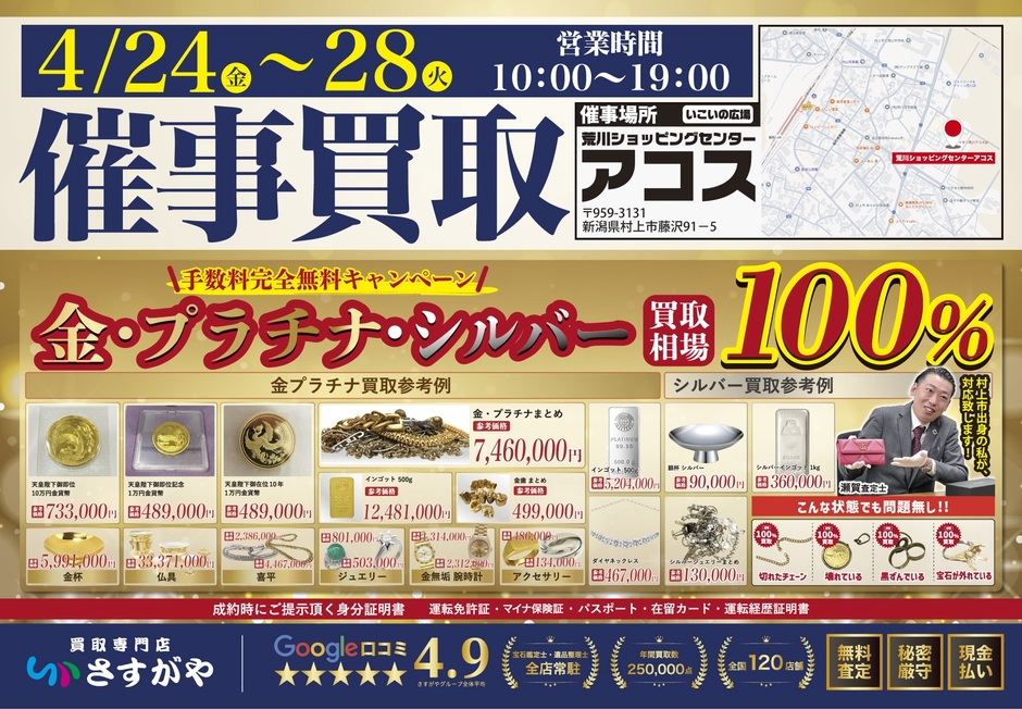 買取専門店さすがやは、新潟県村上市にて期間限定の催事買取イベントを行います。