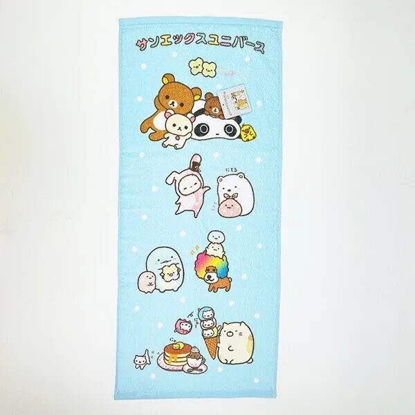 すみっこぐらしやリラックマ、あの懐かしサンエックスキャラクターも大集合!?個性豊かな仲間たちがデザインされた優しい手触りのタオルです。