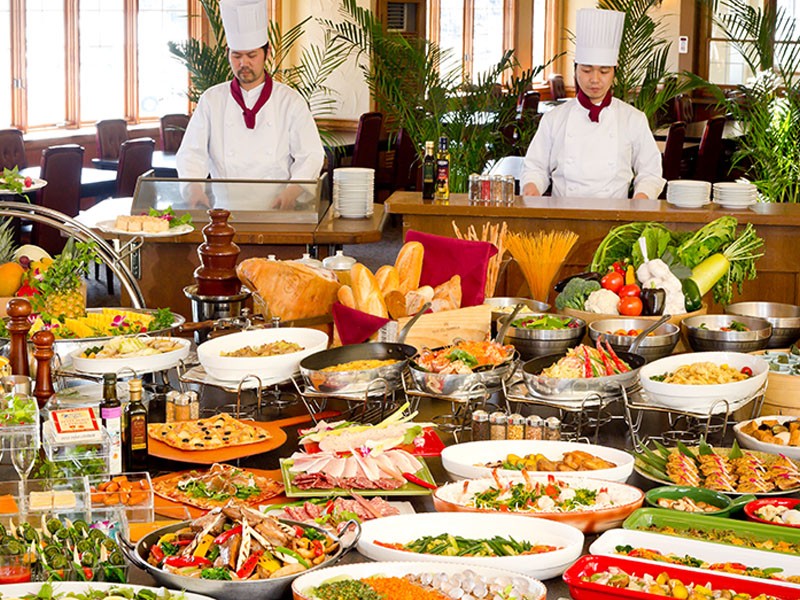 ライブキッチンの出来立て料理や郷土料理など、約50種類の和洋中バイキングをご用意。この冬は“カニ食べ放題”と“夕食時のアルコール飲み放題”が加わり、手軽にちょっと贅沢な夕食をお楽しみいただけます。