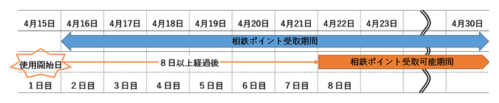 <例>4月15日に使用開始の定期券の場合、4月22日からポイントの受け取りが可能となります。