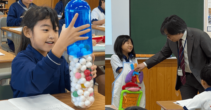 ●錠剤とカプセルの仕組みを模型に触れながら学び、児童の知的好奇心を育む