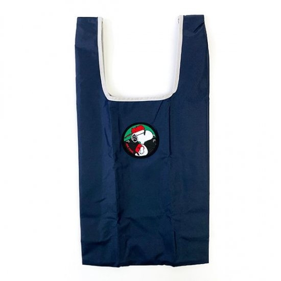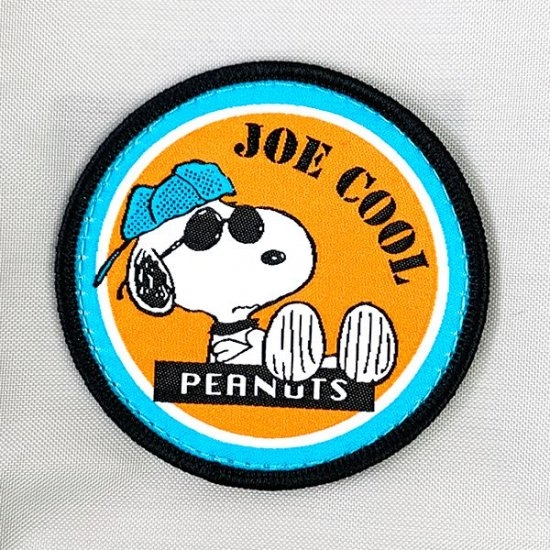 ネイビーカラーのベーシックなバッグには、ジョークールスタイルのスヌーピーのワッペンが付いています。