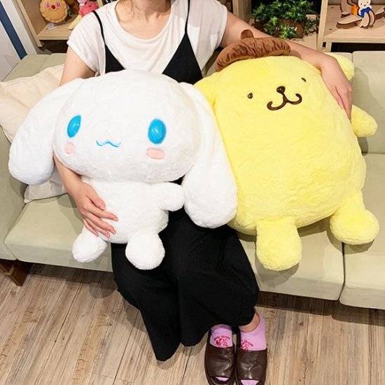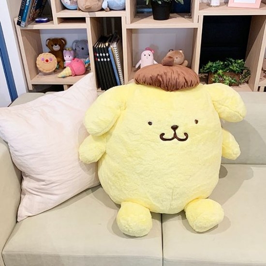 このボリューム感伝わりますか?触り心地がほわほわの、2Lサイズぬいぐるみです。家に帰ってきてこんなに可愛いポムポムプリンがお出迎えしてくれたら、かなり癒されますよね~!