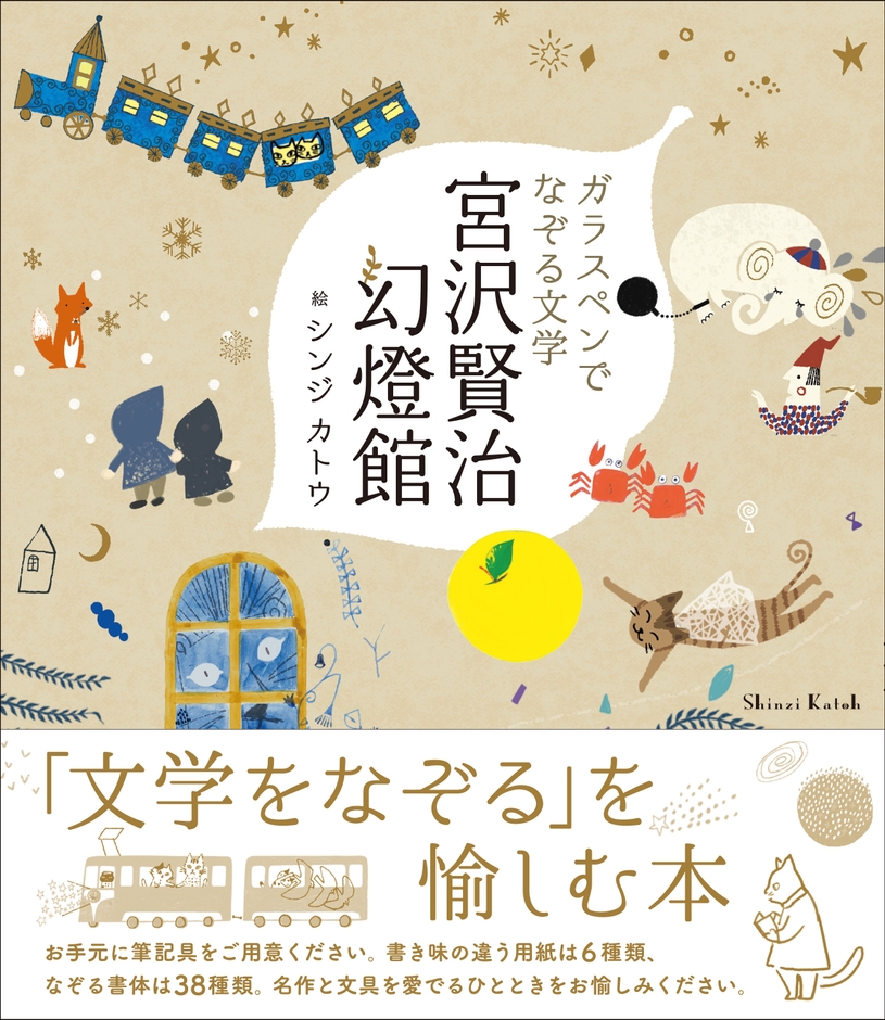 大人気!「きらぴかマスキングテープ 宮沢賢治幻燈館」で文具女子におなじみのShinzi Katohの世界が、ガラスペンでなぞって楽しむ本になって登場!文学をお気に入りのガラスペンとインクでなぞる時間を楽しむ、文具女子必見の一冊です。