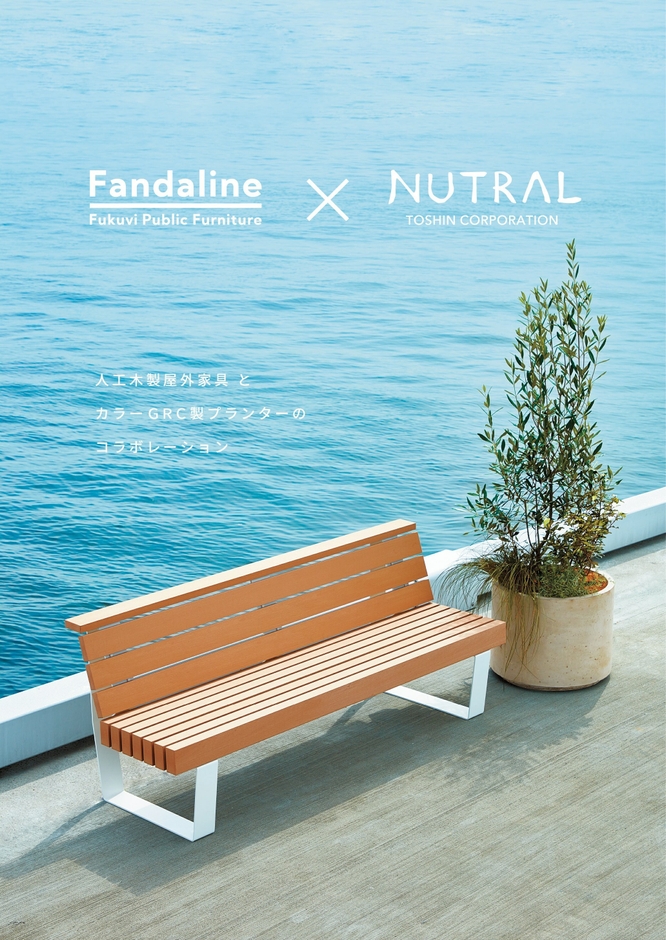 株式会社トーシンコーポレーションは、カラーGRCプランター「NUTRAL(ニュートラル)」を2021年4月より発売開始。一方、フクビ化学工業株式会社は、2021年8月に屋外家具ブランド「Fandaline(ファンダライン)」を発表し、2021年10月より販売を開始しました。株式会社トーシンコーポレーションのニュートラルとフクビ化学工業株式会社のファンダラインには、耐久性やさらなる表現を求めた新素材製品という共通点があり、お互いのプロダクトをコーディネートすることで、より付加価値の高い空間を提案できると考え、ブランドコラボレーションを行うことになりました。