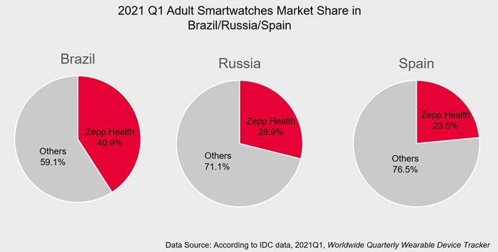 世界全体で 68.8% の成長を遂げている Zepp Health は、ブラジル、ロシア、スペインの市場リーダーです。