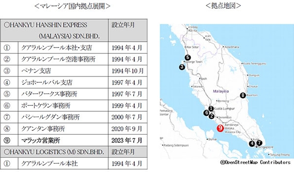 当社マレーシア法人であるHANKYU HANSHIN EXPRESS (MALAYSIA) SDN.BHD.は、マレー半島南西部のマラッカに新たに営業所を開設し、7月3日より営業を開始します。
