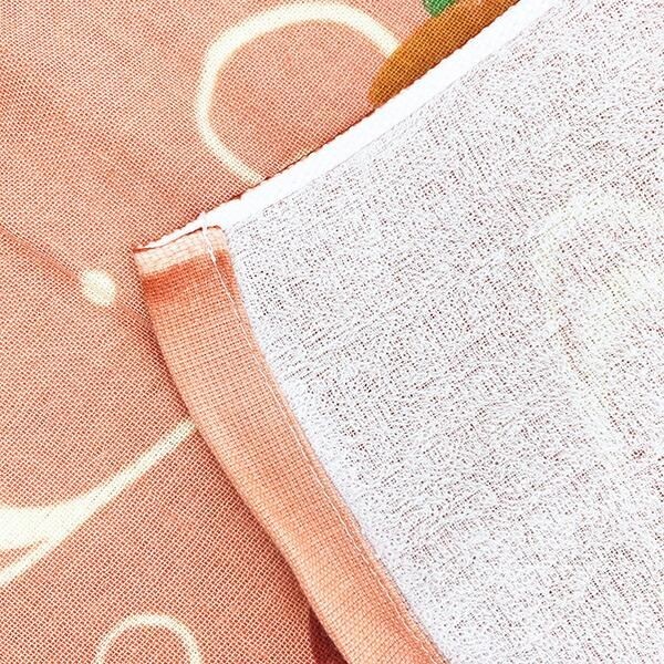 吸水性が高く使い心地の良い、リックとお花のイラストが描かれた朱色のタオルです。汗を拭いたりお手拭きにしたりと様々な場面で大活躍します。