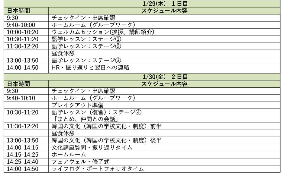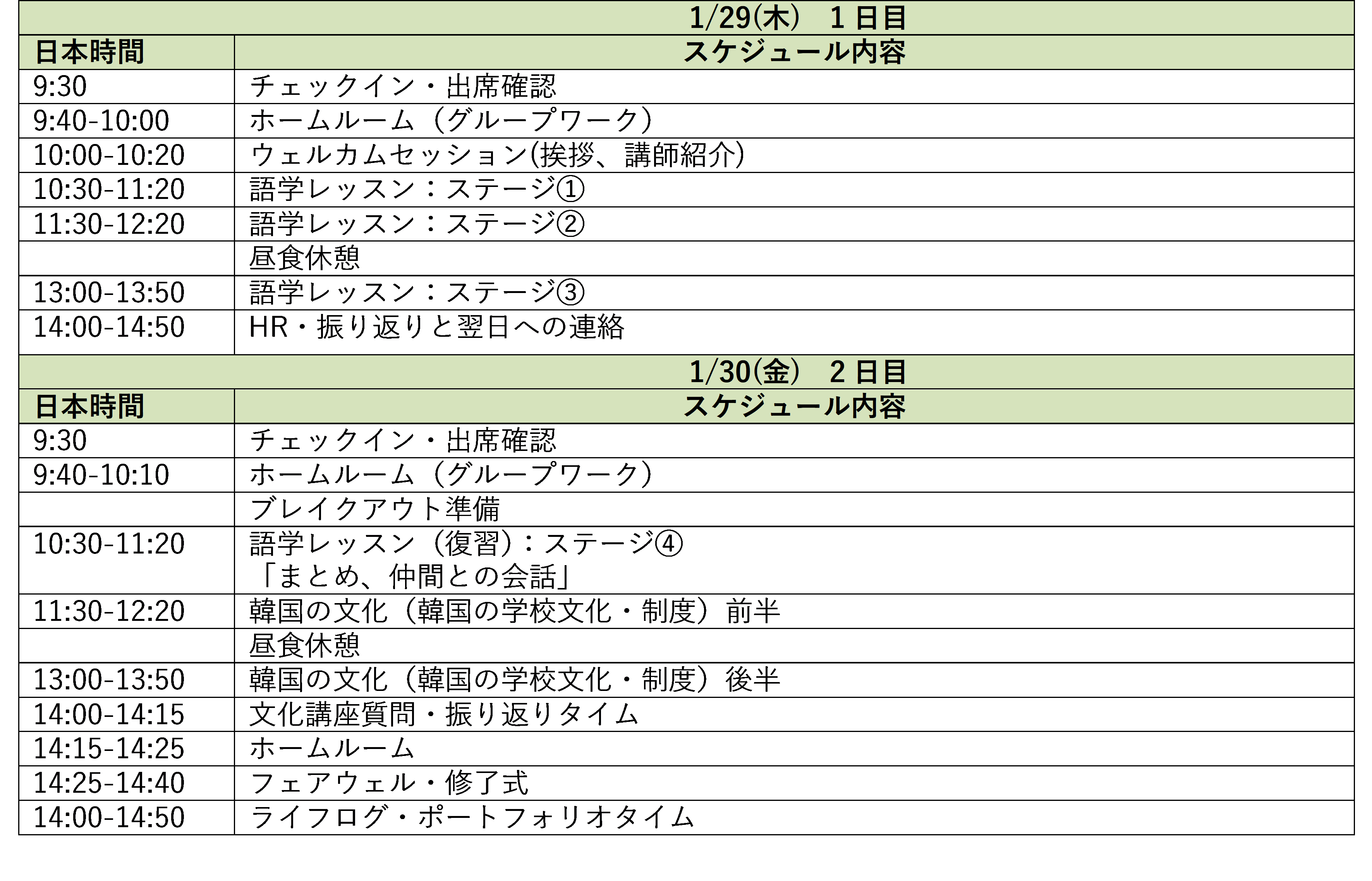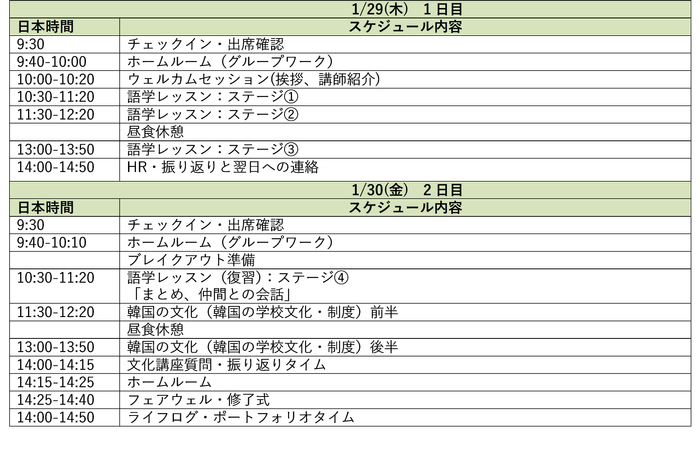 本プログラムは、韓国人講師や全国の第一学院高等学校の生徒との交流を通じて、実践的なコミュニケーション力を育むことを目的としています。