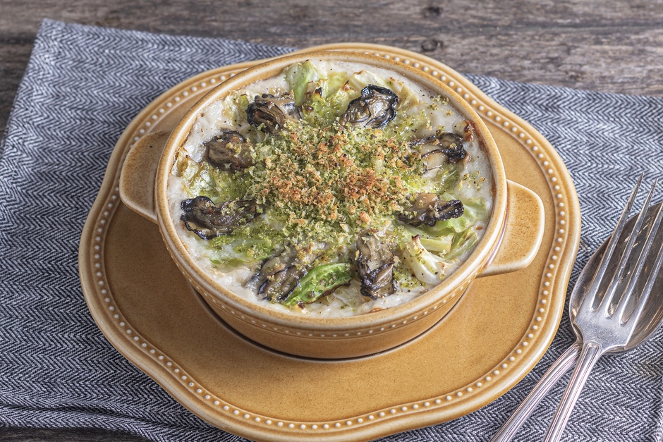 『糸島カキと加布里キャベツのドリア ドフィノワ風』