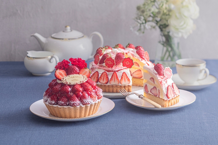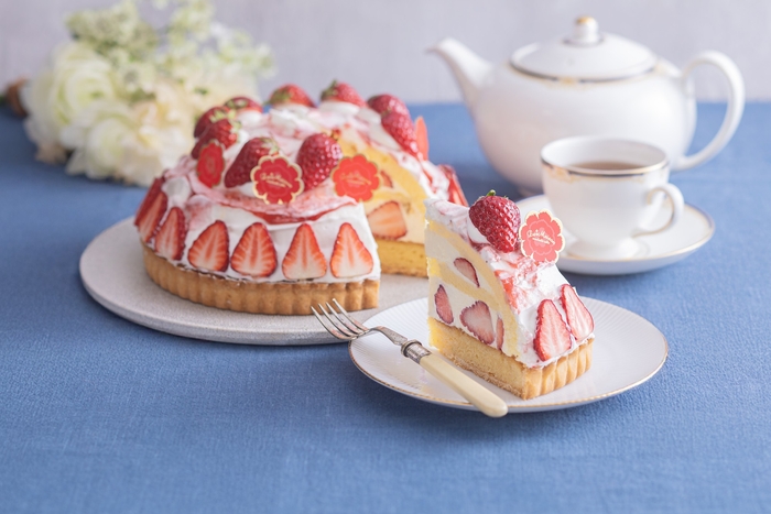 カスタードタルトにベリークリームを重ね、ほのかにローズ香るチェリーベリージュレをしのばせました。カーネーションといちごを贅沢に飾り、ブーケにみたてた母の日限定タルトです。