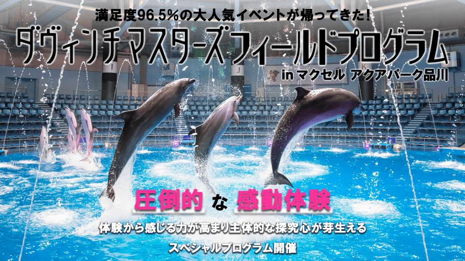 「ダヴィンチマスターズ」は2016年より延べ1万人以上の子どもたちが参加。遊びながら学びにつながる体験プログラムを通じて、未来を担う子どもたちが最後までやり遂げ、“できる” を経験し、自己肯定感や社会意識、思考力など「社会を生き抜く力」を引き出すことを目的として活動しています。ダヴィンチマスターズがマクセル アクアパーク品川を貸し切り、プログラムを行うのは2回目となります。