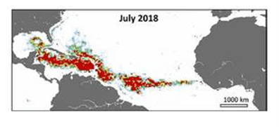 大西洋では昔からサルガッサムが繁殖しており、大量のサルガッサムが集積している海はサルガッソー海と言われ、ここに入り込んだ帆船が出られず無人の帆船が漂っている話をよく聞いたものです。近年、地球温暖化、アマゾン川の富栄養化、サハラ砂漠からの金属供給の条件がそろい、サルガッサムベルトが大西洋を横断するほどに成長しています。これが流されてカリブ海、さらにはメキシコ湾にまで流れ込み、沿岸に大量に打ちあげられています。