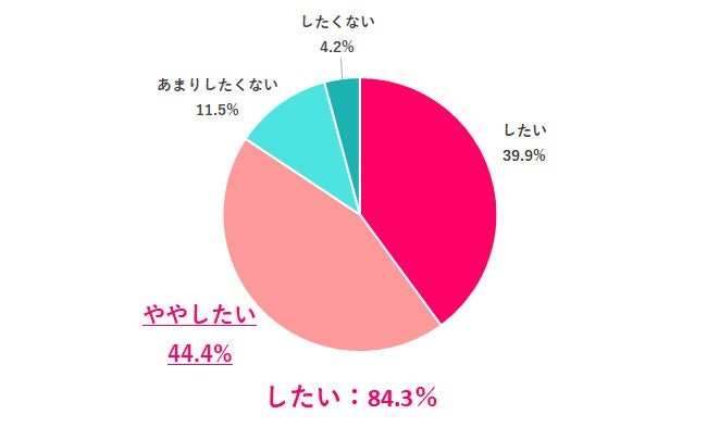 今後転職活動するならカジュアル面談をしたいか聞いたところ、「したい」39.9%、「ややしたい」44.4%で、あわせて84.3%がしたいと回答しました。反対に「あまりしたくない」11.5%、「したくない」4.2%で、あわせて15.7%がしたくないと回答しました。