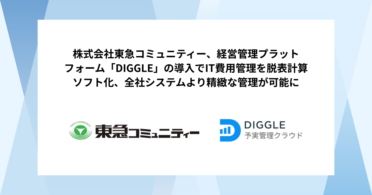 株式会社東急コミュニティー、経営資源の戦略的な投資判断を支える経営管理プラットフォーム「DIGGLE」の導入でIT費用管理を脱表計算ソフト化、全社システムより精緻な管理が可能に。導入事例インタビュー記事を公開