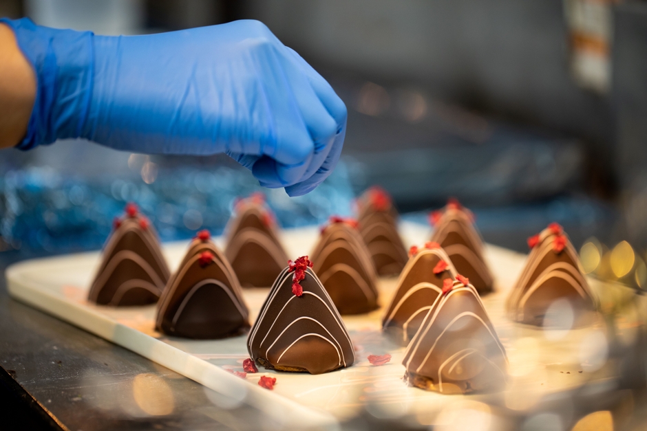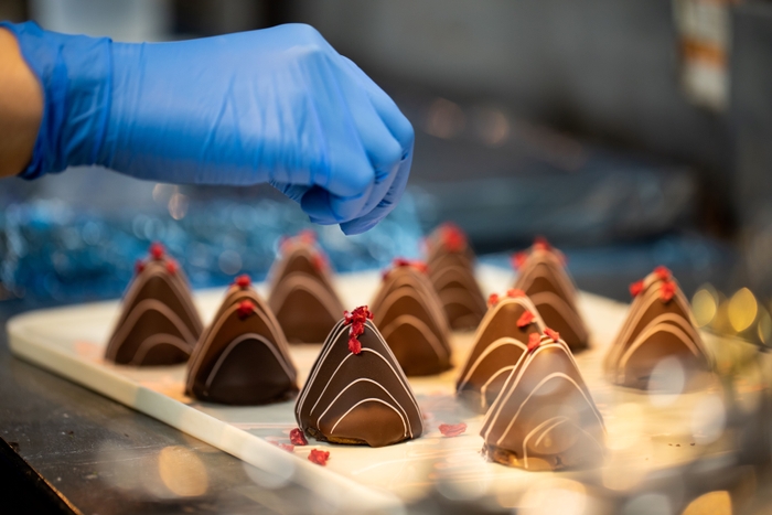 チョコレートの扱いは非常に難しく、スイーツの製造にも繊細な技術が必要となります。そんな商材として難しいチョコレートを扱うにあたって、古くから楽器や輸送機器など、ものづくりの町として発展してきた浜松の“ものづくりの精神・クラフトマンシップ”を受け継いだチョコレート職人が日々工房内でスイーツ作りに励んでおります。チョコレートの温度管理や調合のタイミングの微調整など、職人技術を集結させ、当店でしか味わうことのできない特別なチョコレートスイーツを生み出しました。