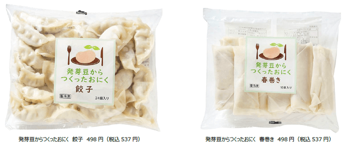 昨年発売した、焼くだけ・揚げるだけで簡単・便利な「発芽豆からつくったおにく」シリーズの「餃子」「春巻き」に加え、大豆ミートを使って調理したいというご要望にもお応えするため、“ひき肉タイプ”を開発いたしました。