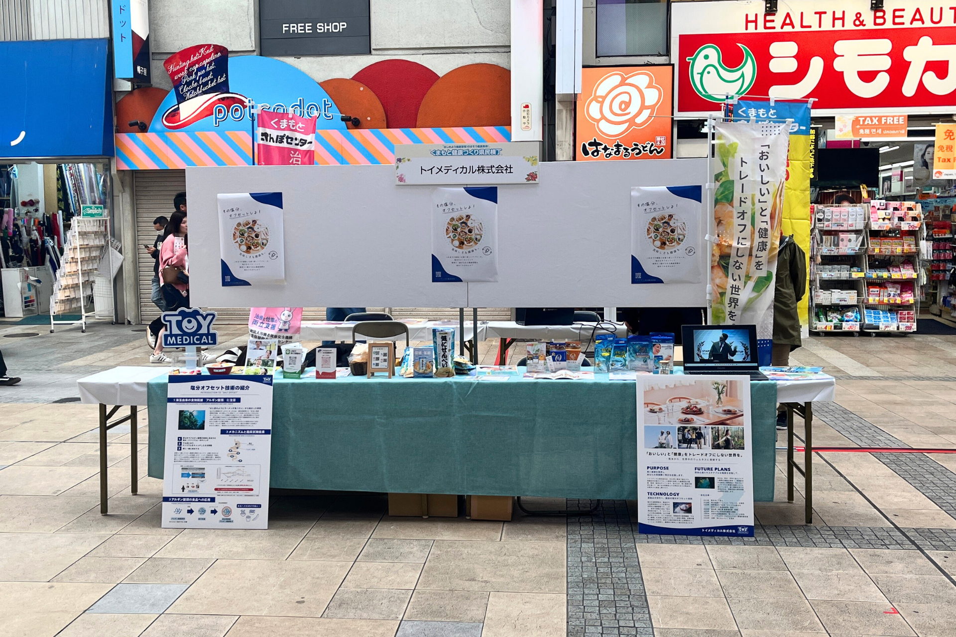 塩分の過剰摂取問題の課題解決に取り組むトイメディカル株式会社(本社:熊本県熊本市、代表取締役社長:竹下英徳)は、2025年11月23日(日)に熊本市で開催された「くまもと健康づくり県民フォーラム2025」と同時開催の「くまもと健康づくり県民横丁」にブース出展し、当社独自の海藻由来成分を活用した「塩分オフセット技術」による健康ケア商品を一般来場者に紹介しました。