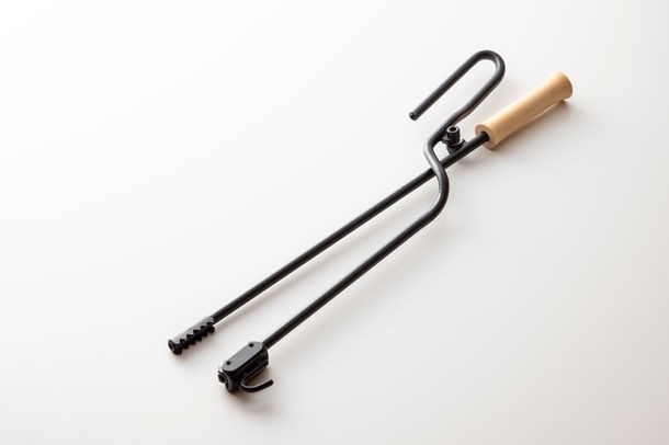 空気を送る火吹き棒の機能と、薪を操作する火バサミ機能を兼ね備えた薪バサミに、オプションのフックと灰かきを装着することで、引っ掛ける機能とかき出す機能が加わります。金属加工専門職人たちが全てハンドメイドで製作。