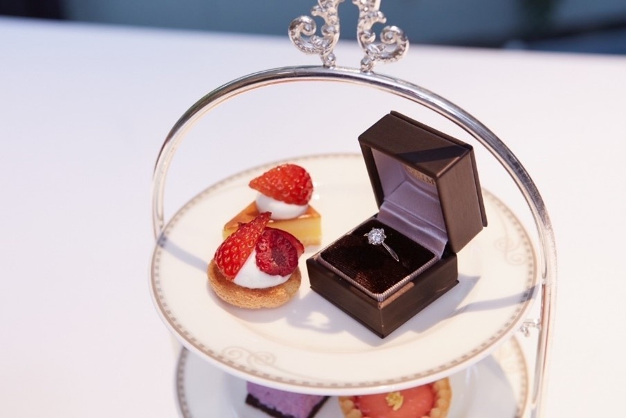 ブライダルジュエリーの企画・販売を行うプリモ・ジャパン株式会社が運営するブライダルリング専門店「I-PRIMO(アイプリモ)」から、サプライズプロポーズにぴったりなレストランでする、アイプリモオリジナルプロポーズプランをご紹介いたします。定番の夜景が見えるレストランから、海外映画のようなワンシーンを演出する特別なプラン、チャペルでプロポーズなど幅広く展開しております。その中でも、他の人とはちょっと違った演出をしたい方におすすめする「アフタヌーンティープレートにリングをセットしたランチプラン」は、東京表参道に構える『ザ ストリングス 表参道』内、「TAVERN by the green」にて実施。ちょっとおしゃれなランチデートのはずが、デザートのプレートの上に、”アイプリモ”のボックスに入ったエンゲージリングがセットされ、まるで海外映画のヒロインになったようなサプライズを演出します。おふたりの理想に合うレストランプロポーズをこの機会にご利用ください。