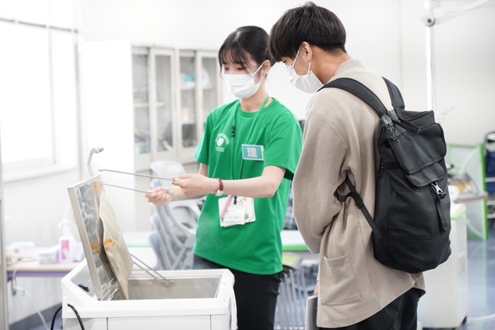 2.今年春に誕生した新棟「あおいポート」にある言語聴覚実習室や理学療法実習室をはじめ、全8学科の実習室を見学できます。