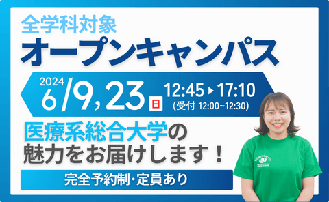 森ノ宮医療大学(大阪市住之江区、学長:青木 元邦)は、2024年6月9日(日)・6月23日(日)にオープンキャンパスを開催します。今回のオープンキャンパスでは今春完成した新校舎「あおいポート」も見学可能です。5月20日17時から申込を開始いたしました。皆さまのご来場をお待ちしております!