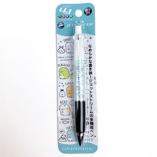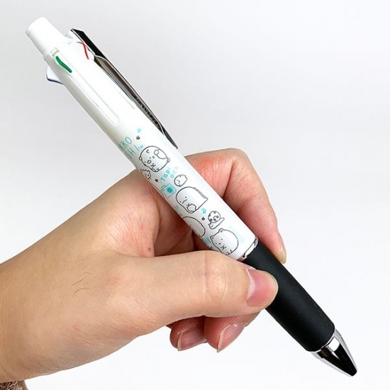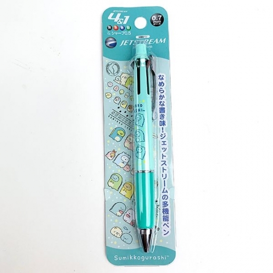 子供から大人までの沢山の人達に愛されているすみっコぐらしの文房具が登場!ペン1本で5つの機能☆黒・赤・青・緑の4色ボールペン&シャープペンシル0.5の機能があります。ボールペンはなめらかな書き味のジェットストリームインク♪大人カジュアルでシンプルなデザインですので、ご年齢問わずお使いいただけます。プレゼントとしても喜ばれると思います♪