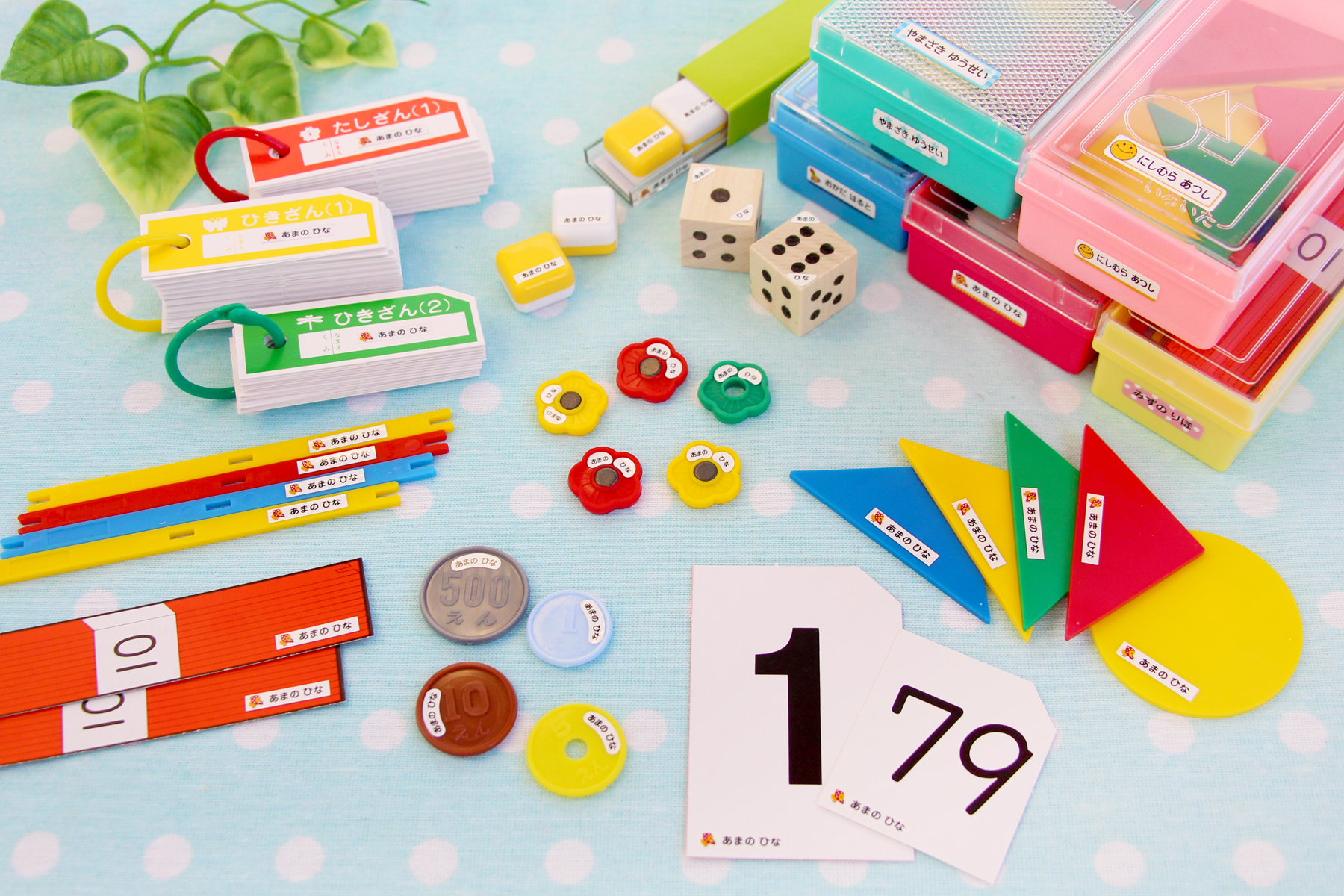 小学校でつかう「算数セット」に貼れるお名前シールを、【入学準備・応援企画】として早期割引いたします。