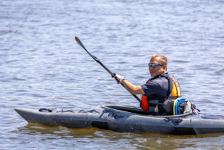 地元千葉県佐倉市在住の長洲選手は日本代表として2025年8月31日にスロベニアで行われたワールドカップに出場し、カヤッククロスで日本人史上初めて2位銀メダルを獲得。小さいころから練習してきた印旛沼で凱旋報告することとなります。