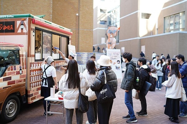 2024年12月3日、10日の2日間、1限が始まる前の名城大学の一角にいつもと違う景色が。東海圏ではみんなおなじみの「コメダ珈琲店」のキッチンカーの前に、たくさんの人が列をなしています。モーニングセットを食べて、エネルギー満タンで講義へ。大学生の朝ごはん習慣の改善を目指す新たなプロジェクトが、名城大生の「チームはらぺこ」と株式会社コメダホールディングスとの連携によって実施されました。このコラボレーションがどのように実現し、お互いにどんな学びが生まれたのかレポートします。